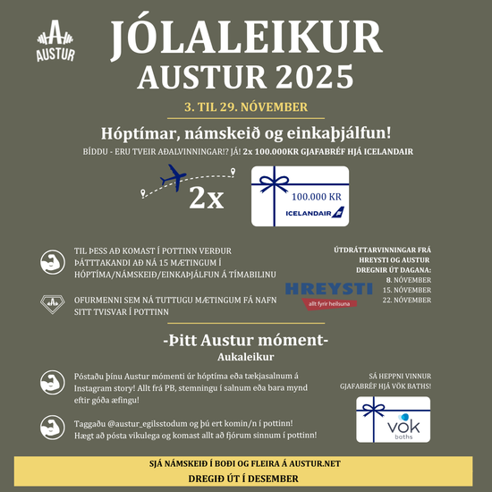 Að auki verður samfélagsmiðlaleikur þar sem einn heppinn Instagram fylgjandi fær gjafabréf frá Vök baths!